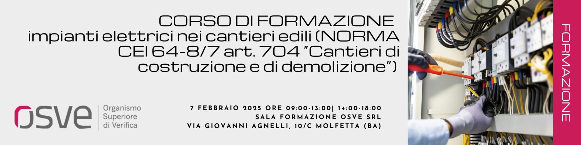 Il corso di formazione fornisce il riconoscimento di idoneità del personale all’esecuzione dei lavori elettrici nei cantieri edili.